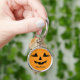 Keychain for Halloween with jack o lantern face with lashes. Customise with name or phrase.