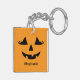 Keychain for Halloween with jack o lantern face with lashes. Customise with name or phrase.