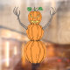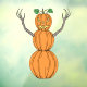 Built like a snowman, but of pumpkins instead of snow, a jack-o'-lantern faced pumpkin man raises his twiggy arms to scare all this Halloween.