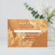 This autumn wedding RSVP card with meal choices has a pumpkin colour theme featuring subtle monochromatic maple leaves accenting a flowy gradient in shades of earthy pumpkin - by katz_d_zynes
