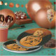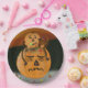 Cute Halloween design with a young pumpkin eating Halloween candy on top of, not so happy Dad pumpkin. Orange and black Halloween party plates.