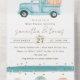 This minimalist, simple, and modern watercolor Pumpkin Truck fall design is perfect for a baby boy shower. The design features a charming vintage-style blue truck filled with pumpkins. The watercolor technique adds a soft and artistic touch to the overall design.