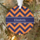 Pumpkin Navy LG Chevron Navy Blue Name Monogram Ornament
