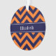 Pumpkin Orange and Navy Blue Large Chevron Zig Zag Pattern,Navy Blue Ribbon Name Monogram Label