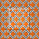 Custom Fabric: Dark Grey, White Moroccan Quatrefoil Trellis Pattern #5DS on a Pumpkin Orange Background