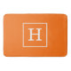 Pumpkin Orange White Framed Initial Monogram Bath Mat