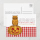 Pumpkin Owl & Gingham Baby Girl Announcement Postcard