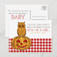Pumpkin Owl & Gingham New Baby Announcement Postcard