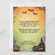 The back of the invitation continues with the same yellow background and creepy theme, providing additional space for RSVP details or any extra notes. This design blends the eerie, captivating elements of the jack-o'-lanterns and the creepy trees with a vibrant yellow backdrop, making it ideal for a Halloween party that aims to be both thrilling and memorable.