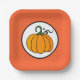 Party paper plate shown with a cute pumpkin print. Use for the holidays Halloween or Thanksgiving.