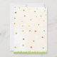 This red, orange, blue and green Autumn invitation features cute little scarecrow holding red balloon, green tractor with pumpkins and some leaves around.