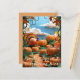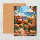 This Pumpkin Patch Harvest Postcard captures the cosy spirit of fall with a vibrant paper-cut style illustration of a bountiful pumpkin field. Bright orange pumpkins with teal stems sit among lush green vines, framed by a brilliant blue sky with fluffy white clouds. Among pumpkins, one smart turkey masquerading as a pumpkin, Perfect for Thanksgiving greetings, autumn gatherings, or sending seasonal cheer, this postcard brings the warmth and charm of the harvest season to friends and family.
