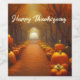 Beautiful AI rendered digital art bottle labels feature colourful pumpkin path in an Autumn forest. Personalise with your own Autumn/ Thanksgiving greeting in modern script font.
