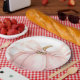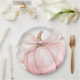 This elegant and charming baby shower paper plates feature a beautiful watercolor illustration of a pumpkin with a delicate pink ribbon, perfect for celebrating the upcoming arrival of a little one in the fall season.