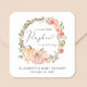 Elegant sticker for your baby shower party favours and correspondence featuring "A Sweet Little Pumpkin Is On Her Way" in a pretty script with a heart swash, and a wreath of pastel pink and coral pumpkin and floral watercolors. Easily personalise the mother's name and shower date in simple typography.