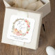 Elegant and pretty thank you sticker for your baby shower party favours and correspondence featuring "Thank You" in a pretty script with a heart swash, and a wreath of pastel pink and coral pumpkin and floral watercolors. Easily personalise the mother's name and shower date in simple typography.