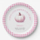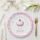 Pumpkin Pink Gingham Plaid Baby Girl Baby Shower Paper Plate