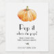 Pop it when she pops! Pumpkin themed tag, perfect for a baby shower to have guests celebrate when baby arrives! Customise with name, event date or custom text.