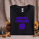 Halloween-themed teacher T-shirt featuring the playful phrase "Pumpkin Professor." The design includes an image of a pumpkin, creatively integrated into the overall aesthetic. The typography is rendered in a vibrant purple hue, adding a touch of visual flair. This T-shirt is perfect for teachers who want to celebrate Halloween in a fun and spirited way. The central element is the "Pumpkin Professor" slogan, complemented by the pumpkin image. The use of purple typography enhances the shirt's eye-catching appeal.