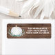 These address labels are decorated with a watercolor white pumpkin and eucalyptus foliage in soft shades of green on a barn wood background.