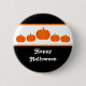 Fun and charming Pumpkin Row Halloween Button featuring a row of pumpkins and an orange striped border. This cute button will add a fun bit of Halloween flair to your day! Easy to customise, simple add the personalised text of your choosing. Click on the "Customise It" button to play around with fonts, text colours or to add/remove text.