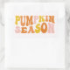 This vibrant and cheerful fall design celebrates the beloved "Pumpkin Season" with bold, retro-inspired typography. The text is arranged in a playful, wavy layout, with each letter filled in a warm, autumnal palette that includes shades of orange, yellow, and pink. The chunky, curvaceous letters give the design a fun and nostalgic feel, reminiscent of classic 1970s styles. The overall effect is lively and inviting, perfectly capturing the excitement and cosiness that come with the fall season.