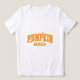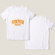 Colour White and Orange. You can change the print colour and shirt colour to whatever colour you want just customise this item.