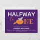 A baby half birthday party invitation with a pumpkin and shark theme in purple, white, and orange. It features a cute shark in a pumpkin as the first letter of the word “One”. Simply customise this invite, add it to your cart, and enjoy celebrating your baby’s first six months!
