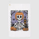 Pumpkin Skeleton Drinking Coffee Golf Towel