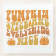 This delightful fall design captures the essence of the season with the phrase "Pumpkin Spice and Everything Nice" presented in a bold, retro-inspired font. The text is arranged in a playful, wavy layout that gives the design a dynamic and energetic feel. Each word is filled with warm autumnal hues, including shades of orange, yellow, and brown, which evoke the cosy and inviting atmosphere of fall. The design is further embellished with charming illustrations of pumpkins and a single autumn leaf, adding a touch of seasonal flair.