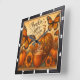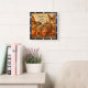 This charming square wall clock celebrates "Pumpkin Spice Season" with elegant script. It features graceful monarch butterflies soaring around an array of pumpkins, including a unique leopard-print one, amidst warm sunflowers and autumn leaves. A steaming mug of pumpkin spice beverage completes this cosy and inviting fall-themed design.