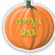 Sticker says "Pumpkin Spice" with a pumpkin background. Text is customisable.