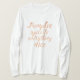 I love this shirt. I had written to the artist asking her if this picture was available on a shirt, and she wrote me back telling me where I could find the shirt. These shirts can be custom made to have a different saying. I loved this saying and went with it. The artist wrote me back later to tell me that she had seen my order go through. How's that for service? Pretty special. It's just as displayed. Perfect!