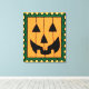 Cute Jack-O-Lantern pumpkin faced stamp Halloween decor. Pumpkin face is orange with green trim. Design created by Black Brook Photography with graphic from Pixabay September 2014.