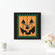 Cute Jack-O-Lantern pumpkin faced stamp Halloween decor. Pumpkin face is orange with green trim. Design created by Black Brook Photography with graphic from Pixabay September 2014.