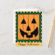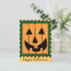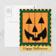 Cute Jack-O-Lantern pumpkin faced stamp Halloween decor. Pumpkin face is orange with green trim. Design created by Black Brook Photography with graphic from Pixabay September 2014.