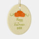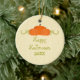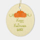 Pumpkin Swirls Halloween Customisable Ornament featuring a trio of pumpkins and a cascade of swirls and dots. This fun Halloween ornament would be great for adding a bit of whimsical Halloween flair to your decor! This ornament would also make a lovely Halloween keepsake gift. Easy to customise, simply add the personalised text of your choosing. Fonts and text colours may be changed to suit your preferences and the design elegant may be moved/resized to accomodate more or less text.