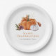 Pumpkin Thanksgiving Paper Plate. These cute and stylish Happy Thanksgiving paper plates feature beautiful watercolor burnt orange and white pumpkins and autumn florals. (Easily change the font from Thanksgiving to Friendsgiving or any message you desire.) Find matching items in the Chic Thanksgiving and Friendsgiving Dinner Invitations.