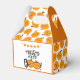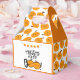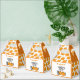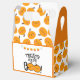 If you don't want to go out trick or treating, why not stay in binging spooky movies sharing treats with your boo? This Halloween party favour treat box is perfect for a movie night at home. It is also a cute addition to a Halloween party night. Fill this box with your favourite treats: popcorn, trail mix, chips, candy, any of your favourite monster munchies. Smiling pumpkins accent the sides, and the word "boo" is written with two happy orange pumpkins. A candy corn banner trims the top. This adorable box is not so scary, it is a kid-friendly Halloween favour box. The writing on the box says, "Treats for my boo!".