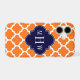 Pumpkin Orange and White Moroccan Quatrefoil Trellis Pattern #5, Navy Blue Quatrefoil 3 Initial Monogram ========