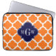 Pumpkin White Moroccan #5 Navy 3 Initial Monogram Laptop Sleeve