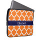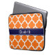 Pumpkin Wht Moroccan #5 Navy Blue Name Monogram Laptop Sleeve