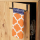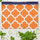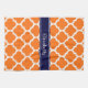 Pumpkin Orange and White Moroccan Quatrefoil Trellis Pattern #5, Navy Blue Ribbon Name Monogram Label