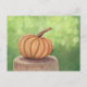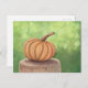 This original acrylic painting by artist Jayne Wilson features a seasonal pumpkin set on a log base, with an attractive bokeh background.
