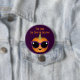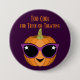 Perfect for anyone who is too cool to trick-or-treat, this Halloween themed button features a whimsical graphic pumpkin wearing retro cat style purple sunglasses and easy to customise text.