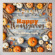 At the centre of the poster, the text “Happy Thanksgiving” is displayed in a large, elegant script font, perfectly overlaying the festive decorations. The font colour is a warm, inviting shade that harmonises with the autumnal palette. Below the main greeting, there’s a smaller text line that reads “The Williams Family,” showcasing the customisable feature of this poster.