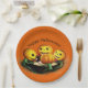 Halloween party plates with pumpkins getting their courage up for the haunted Halloween night ahead by playing a hand of cards. An Ellen Clapsaddle design.