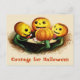 These Halloween pumpkins are getting their courage up for the haunted Halloween night ahead by playing a hand of cards. An Ellen Clapsaddle postcard reprinted here.