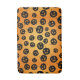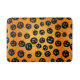 Seamless pattern design with Halloween pumpkins silhouettes on orange background.