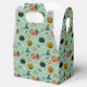 Cute Halloween patterned goodies box with pumpkins, bats, ghosts, witches hats, cauldrons.